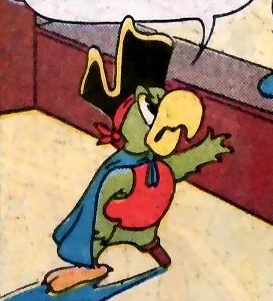 - ↑ Altrimenti potrebbe salvarsi facilmente quando Gambadilegno lo costringe a camminare sull'asse: cfr. Paperino e l'oro del pirata.