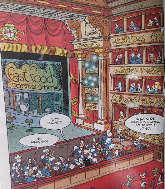 Doubleduck è insospettito dalla sua presenza e decide di entrare nell'orchestra del Maestro per scoprire la causa della presenza del suo avversario a Milano e inoltre per poter far godere a Paperina la visione dell'esclusivo spettacolo.