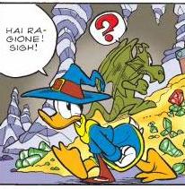Fafnir è il cucciolo di drago adottato dalle stregone Paperino, che compare nella saga fantasy Wizards of Mickey ideata da Stefano Ambrosio .