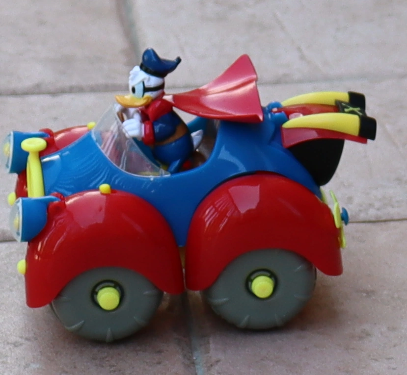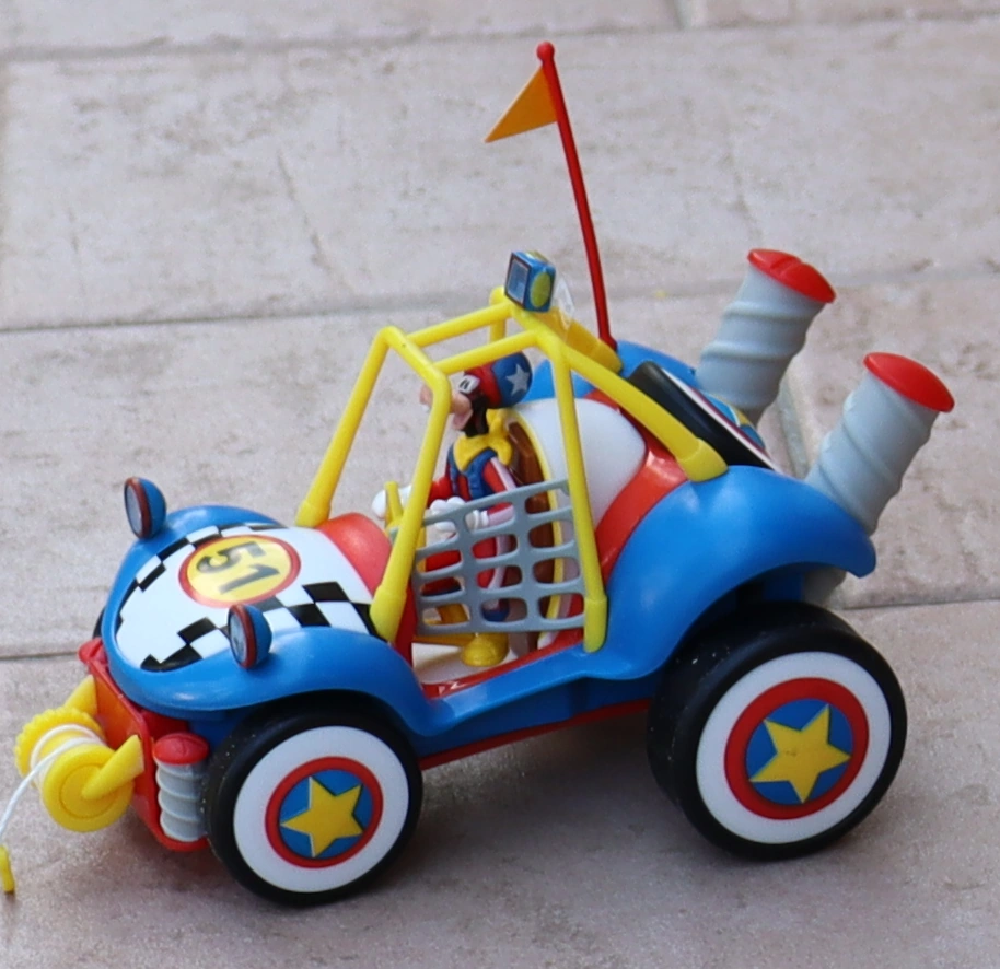 È dotato di pupazzo di Pippo, gancio avvolgibile, bandierina, motore a retrocarica.
