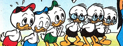 Compaiono in una sola storia, Zio Paperone e i castelli sulla sabbia, pubblicata per la prima volta in Danimarca nel 1984.