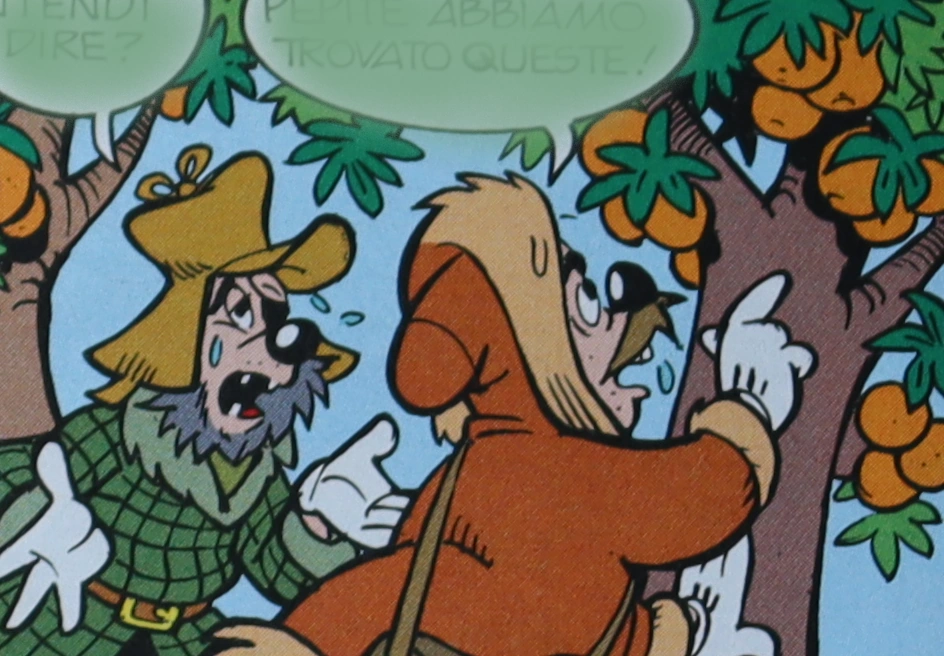 Paperone sembra acconsentire, ma in realtà, avendo intuito le intenzioni dei due, ha sostituito le mappe corrette con quelle false. Così i malviventi rubano le mappe che credono vere e le seguono, finendo per ritrovarsi in un aranceto del Calisota presi a fucilate dal proprietario, mentre Paperone si rimpinza di ciambelle con gli scoiattoli e afferma di voler essere alla pari con gli altri cercatori.