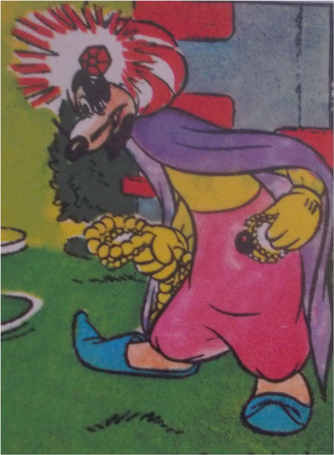Nei panni dello zio Magno veste all'occidentale con grande eleganza, e appare come un personaggio positivo, piuttosto simpatico, un po' eccentrico (dichiara di addormentarsi volentieri alle feste, mentre in realtà si allontana per nascondere i gioielli rubati) e spesso impegnato in battibecchi con la presunta moglie. La scoperta che si tratta solo di un'identità fittizia dello Splendente crea un notevole colpo di scena alla fine della storia.