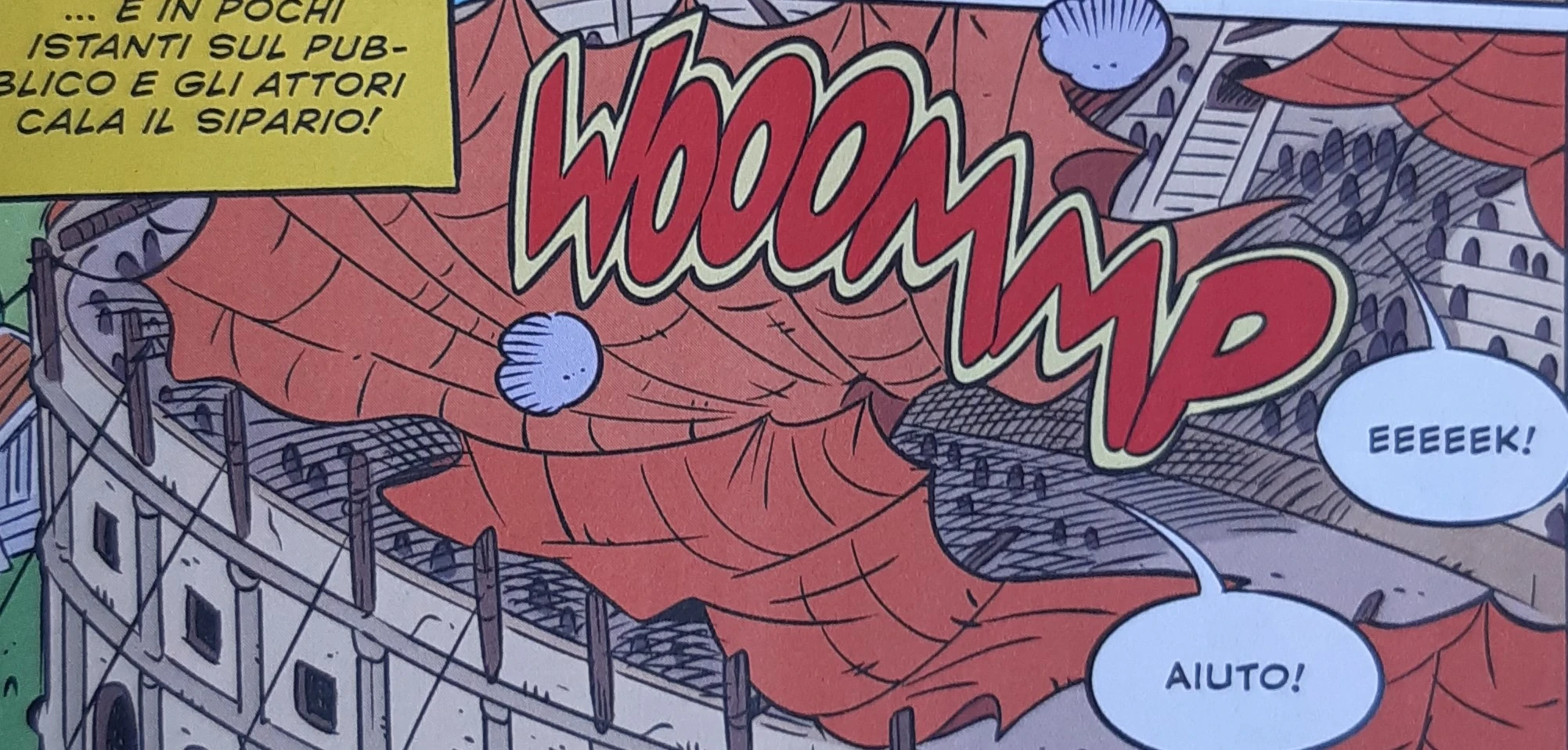 - In realtà nell'anfiteatro di Capua, a ricordo di Spartaco, si esibivano i gladiatori nei loro violenti scontri, ma qui abbiamo necessariamente una versione edulcorata dei giochi, divenuti spettacolo comico di modesta qualità.