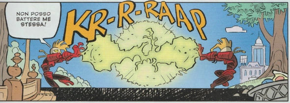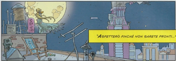 Intanto, nella Paperopoli reale, la Soave Signora ha lanciato i suoi amorfi (che ai cittadini appaiono come innocui Babbi Natale) all’attacco del grattacielo. I due eroi tentano una difesa, ma neanche loro possono nulla contro la superiorità numerica dei bruti e i poteri della loro avversaria.