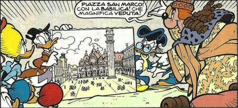 Ignaro, Paperetto raggiunge lo zio e quando il doge vede il dipinto si infuria perché lo ritrae in modo caricaturale. Non credendo alle parole di Paperetto, lo fa portare in prigione ai "piombi" mentre Paperon viene bandito. Paperetta racconta dell'accaduto ai nipotini che capiscono che c'è stato un imbroglio, dato che il dipinto consegnato al doge aveva un sigillo blu e non rosso. Per permettergli di scagionarsi devono prima liberarlo e Papereta chiede aiuto a Gaston. Il fortunato papero usa le sue ammiratrici per distrarre le guardie creando il caos e permettendo a Paperetta ed ai nipotini di liberare Paperetto.