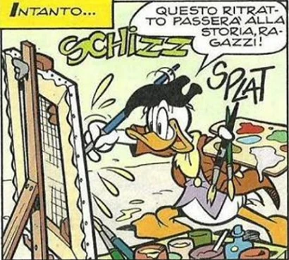 Si presenta però un'occasione. Il doge di Venezia, il vanitoso Vanesio della Fontana, vuole porre fine alla diatriba tra Paperon e Rochio Duchio assegnando l'esclusiva della pubblicità a chi gli porterà il suo miglior ritratto facendolo dipingere da un artista a loro scelta. Paperon naturalmente assegna l'incarico al nipote che si mette subito all'opera. Nel frattempo Rochio Duchio non è soddisfatto del pessimo lavoro del suo artista Luschino Luschini ed incarica i Baxotos di trovare un altro modo per vincere. Paperetto finisce il ritratto non lasciando vedere a nessuno il risultato e mette il suo sigillo rosso come ultimo tocco. Si dirige così a Palazzo Ducale quando, nella nebbia, si imbatte nei Baxotos che fingono di essere suoi ammiratori e sostituiscono il dipinto.