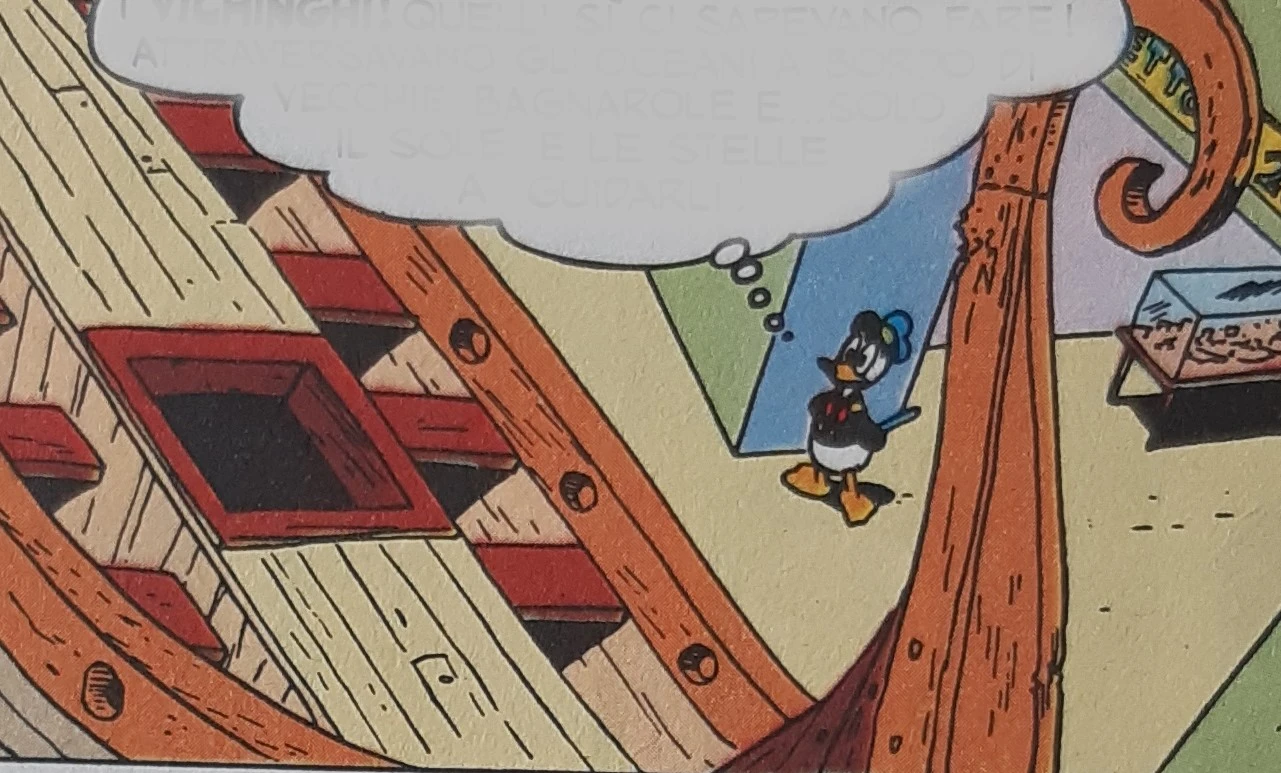 A bordo della barcaccia vichinga il custode trova un misterioso individuo che sta scrupolosamente controllando tutti gli anfratti della nave. Dopo averlo cacciato, Paperino trova casualmente l'oggetto delle ricerche dell'inopportuno visitatore: un'antica mappa vichinga, che consegna subito al direttore del Museo. Il professore rivela che si tratta di una delle scoperte storiche più importanti di sempre: è la prova definitiva che i vichinghi scoprirono l'America cinquecento anni prima di Colombo.