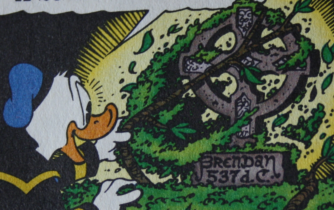 Paperino trova sull'isola una croce celtica con il nome del monaco, ma viene tramortito e derubato da Sharky, ex avvocato di Azure Blue che, forte della reliquia, si vuole proclamare padrone del Nordamerica. Si ripete pertanto la situazione della prima storia in cui tutti i personaggi, in un crescendo di deliranti prepotenze, volevano proclamarsi capi dell’America.