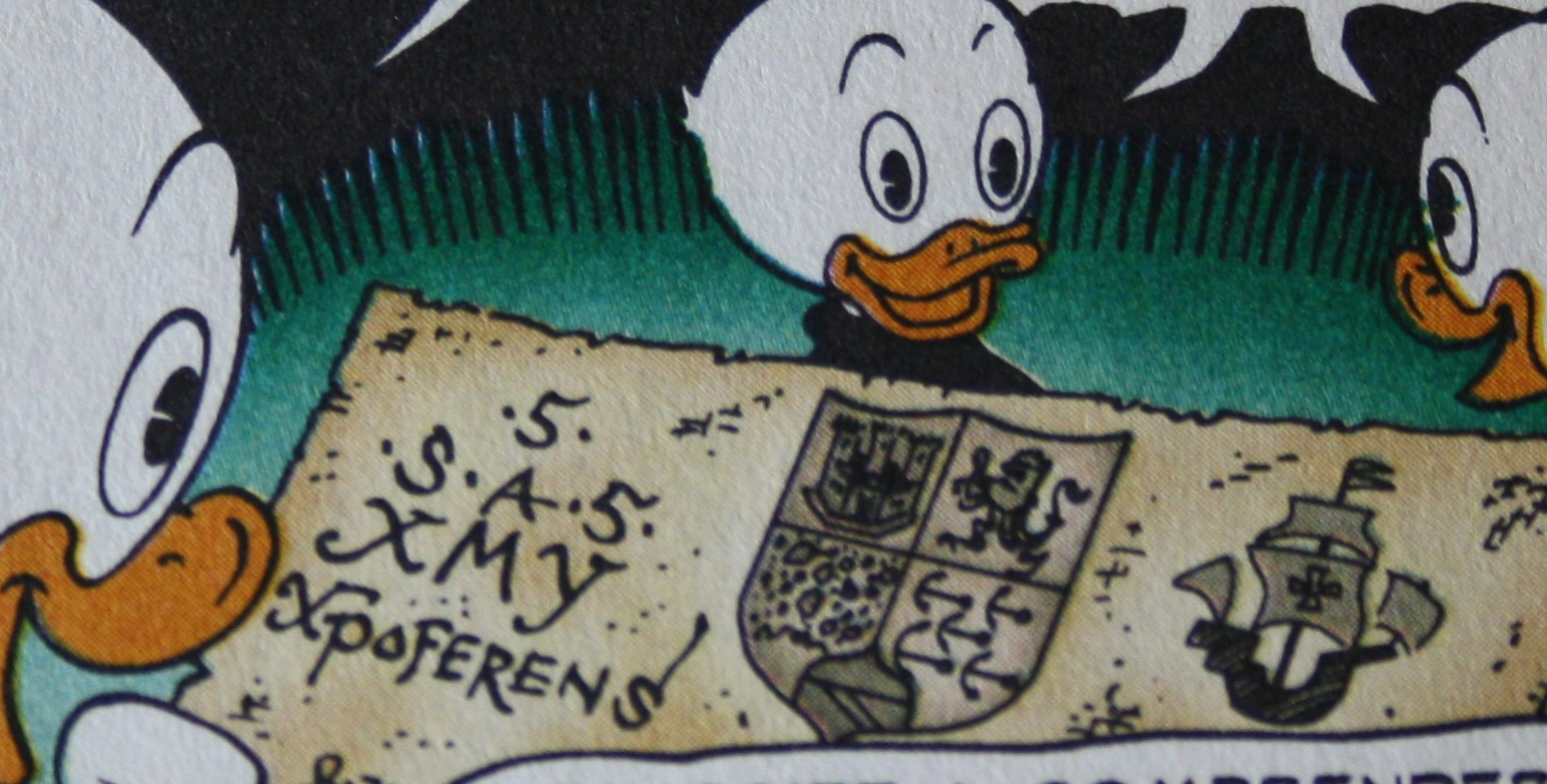 Don Rosa riproduce esattamente l'enigmatica firma di Colombo, come è attestata da alcune lettere e che è stata oggetto di varie interpretazioni;[3] del resto molti particolari della vita dell'esploratore rimangono misteriosi.