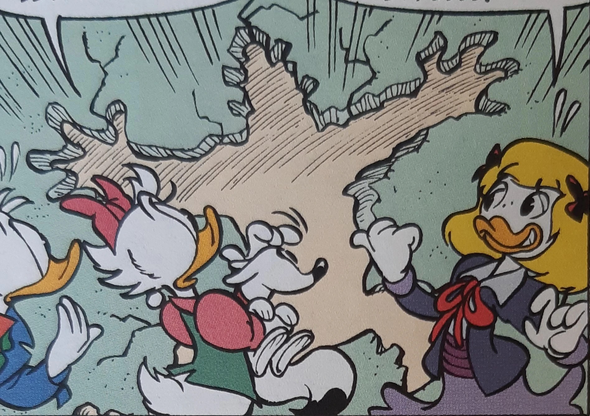 Rientrata in ufficio, Oletta si accorge di aver smarrito la borsetta e torna con Donald al luna-park per cercarla. Giunti vicino alla roulotte di Trouble, ascoltano una conversazione nella quale il proprietario si accorda con qualcuno per rapire le scimmie, grazie alle quali conta di rilanciare il parco. Oletta però si fa scoprire e Trouble insegue i due ficcanaso, tramortisce Donald e lo porta con sé, aspettando che Oletta cerchi aiuto da Benjamin: così, quando la ragazza entra nella casa, arrivano in auto Trouble e il complice Butch, già incontrato da Scoop, immobilizzano Benjamin, rinchiudono in gabbia le scimmie e legano Oletta e Donald sui binari della casa dei mostri.