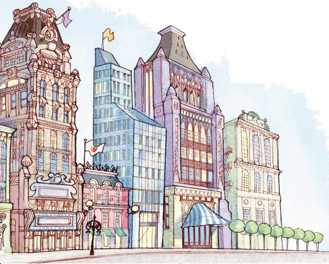 Gli edifici più importanti presenti nel quartiere sono il Club delle Ragazze, il Teatro dell'Opera e il lussuoso complesso termale[1]. Nel quartiere ci sono anche le case di Chiquita, Genialina Edy Son e di Paperina oltre che la lussuosa Villa di Gastone[3].