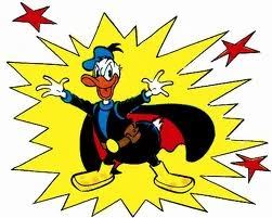 L' Imbianchino Mascherato, mentre volteggia per Paperopoli urlando il suo grido da battaglia.