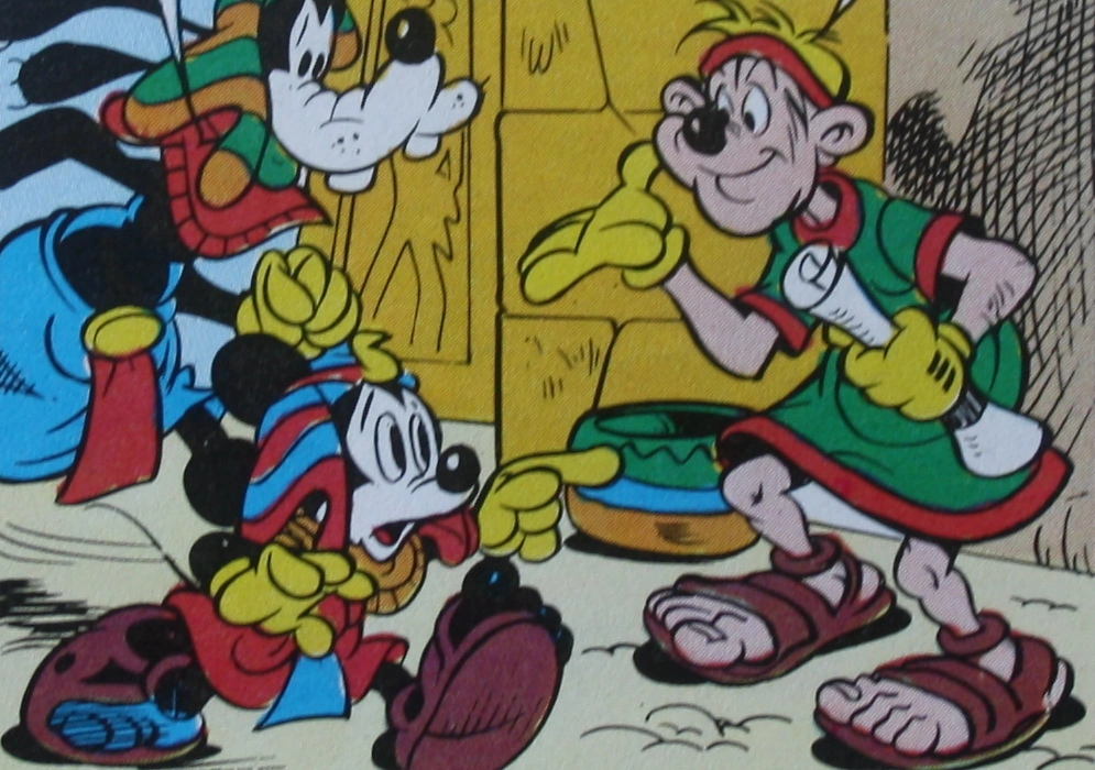 In questa storia, Minni ascolta il racconto di Zapotec e la preoccupazione di Topolino per gli scritti di Calligrafis e sembrerebbe quindi essere a conoscenza della Macchina del tempo, la cui esistenza viene solitamente taciuta. Potrebbe tuttavia trattarsi solo di un espediente per introdurre la battuta finale della gallina faraona.