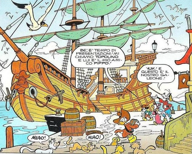 Si tratta di una storia promozionale per il gadget Galeone di Topolino e preceduta dal prologo Paperino e il fiuto tesoriero.