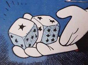 Il ritorno a Paperopoli è amaro per Paperone, che per giunta ha dovuto pelare patate in cambio del passaggio: solo lui, perché Qui, Quo e Qua hanno vinto ai dadi col cuoco di bordo ottenendo così per sé e per Paperino l’esenzione. Le sfortune dello zione rattristano però i nipoti che gli offrono una possibilità di salvare il museo: l’esposizione dei dadi truccati di Vanderdecken. Il museo è quindi salvo e Rockerduck, come promesso, si mangia la bombetta.