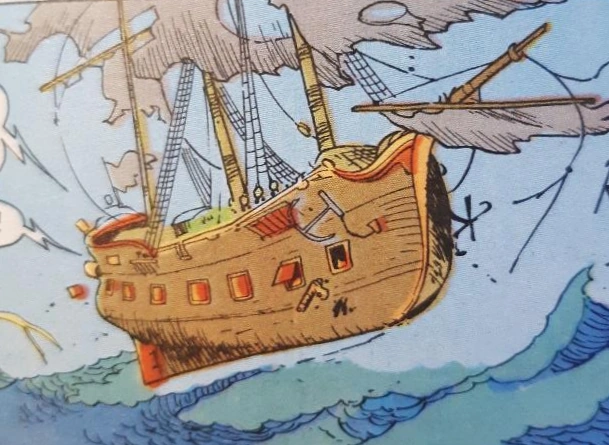 I nipotini nel frattempo hanno trovato degli strani dadi che risultano truccati ( danno infatti sempre sette) e Paperino non ha ancora pescato nulla perché tutti i pesci fuggono non appena il veliero li avvicina; un’altra singolarità è che la nave non viene nominata nell’elenco degli antichi vascelli sul Manuale delle Giovani Marmotte. Tra tanti interrogativi, le razioni d’emergenza che Qui, Quo e Qua hanno provvidenzialmente portato servono almeno a placare la fame dei naviganti.