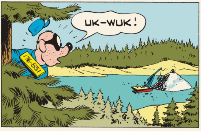 Tuttavia, Paperone non è tranquillo. Preoccupandosi che il fango sul fondo del lago possa rovinare le banconote, tira fuori un po' di soldi alla volta per metterli dentro barattoli di vetro, prima di essere di nuovo rimessi in acqua. Un trucco imparato dal papero quando esplorava un galeone spagnolo affondato, che aveva ancora i documenti intatti in una bottiglia di vetro.